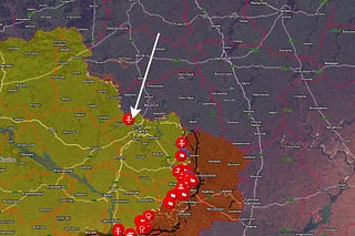 A Russian FPV drone destroys a camouflaged Ukrainian howitzer near Riasne.
