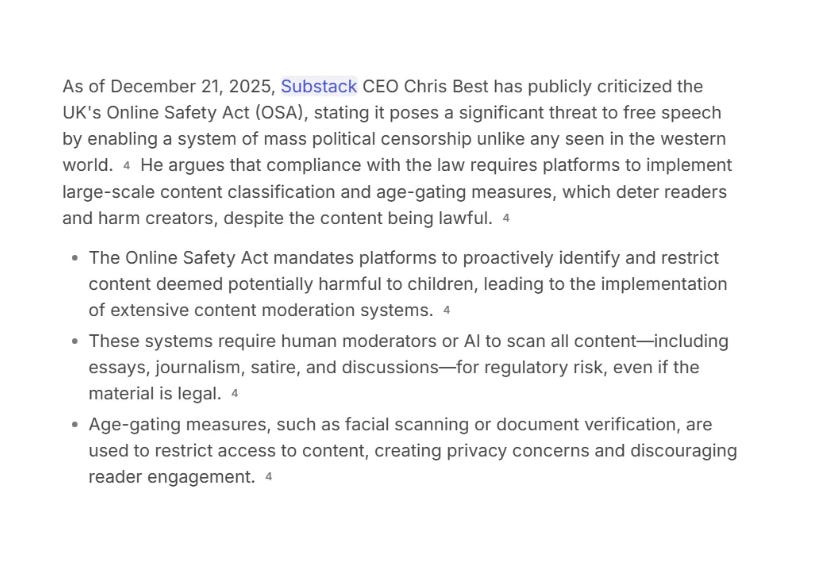 This is either an error or censorship. We are investigating to see which it is. The following leads us to suspect censorship, and not by Substack.