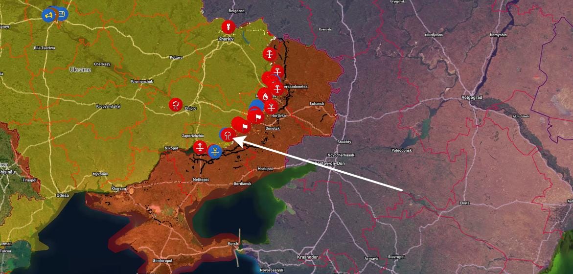 ↗️ The Vostok Group of Forces continued advancing into the depth of the enemy’s defences. Two mechanised brigades, two assault regiments of the AFU, and one territorial defence brigade were defeated near Alekseyevka, Yegorovka, Orestopol (Dnepropetrovsk region), Vishnevoye, and Uspenovka (Zaporozhye region).