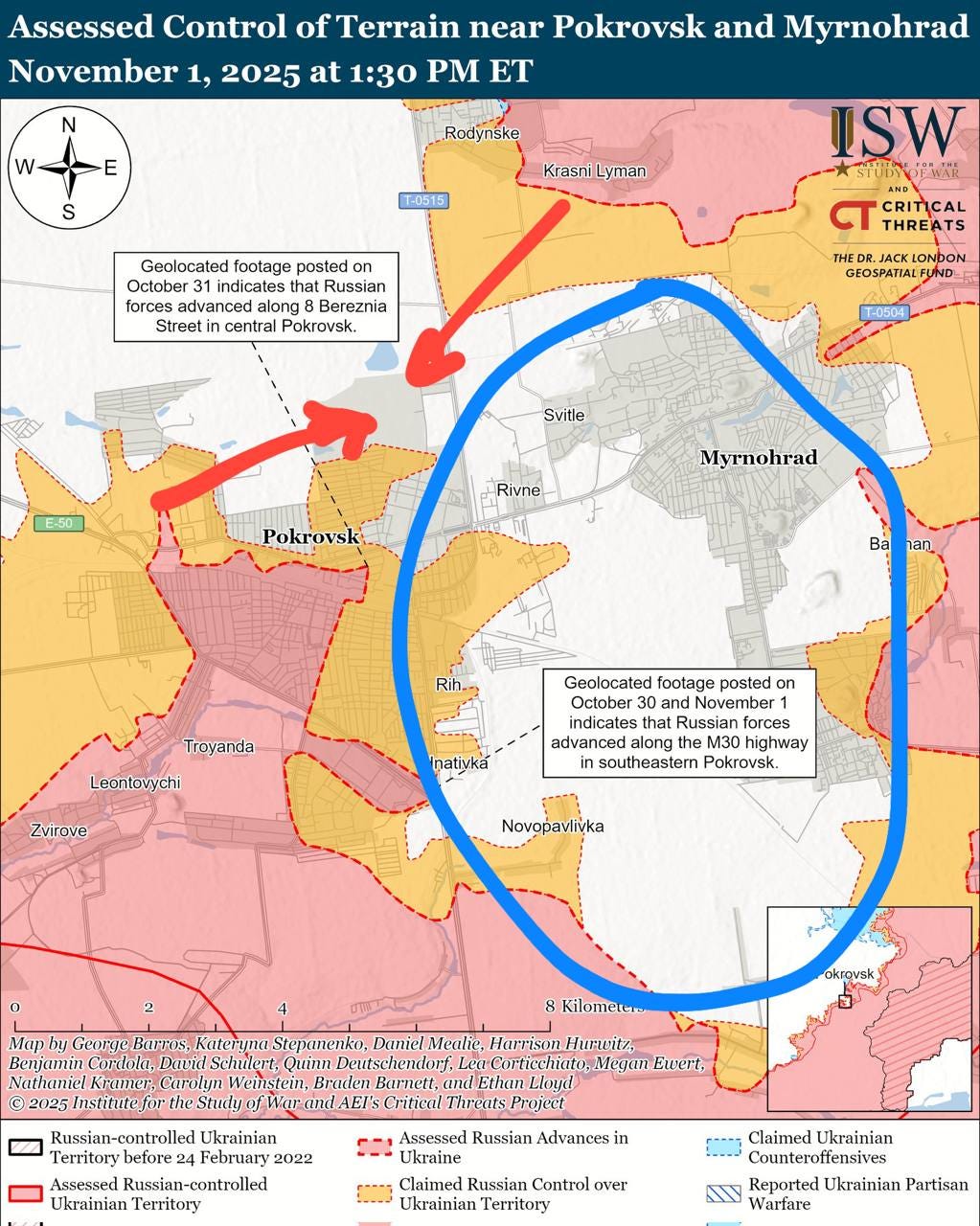 ➖”In Pokrovsk, Russian assault units passed the Multitop gas station area and entered the residential high-rise buildings in the Dinasoviy settlement area (northeastern part of Pokrovsk). The Russian Armed Forces are consolidating their positions in the central and eastern parts of the city,” acknowledge Ukrainian OSINT analysts who geolocated new battle footage.