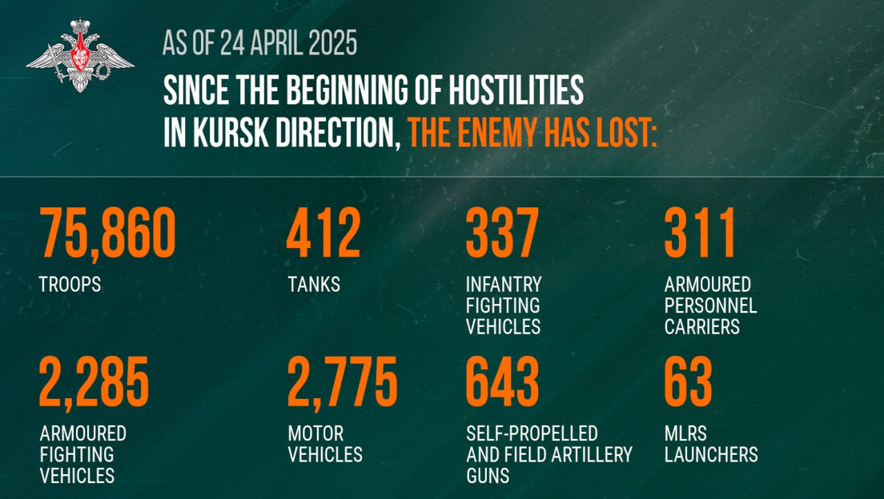 🎖🎖 by Russian Defence Ministry on progress of special military operation as of 24 April 2025