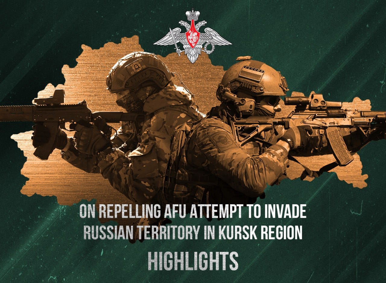 ▫️ The Armed Forces of the Russian Federation continue (https://t.me/mod_russia_en/20872) the operation to neutralise AFU formations on the territory of Kursk region. During the day, the AFU losses amounted to more than 150 troops, one armoured fighting vehicle, one artillery gun, two mortars, one MLRS launcher, 10 motor vehicles, 11 UAV command posts, and two ammunition depots.
