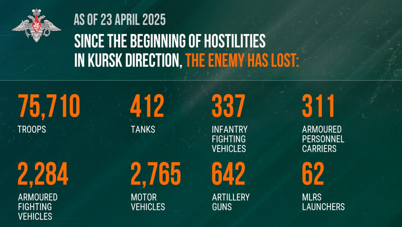🎖🎖 by Russian Defence Ministry on progress of special military operation as of 23 April 2025