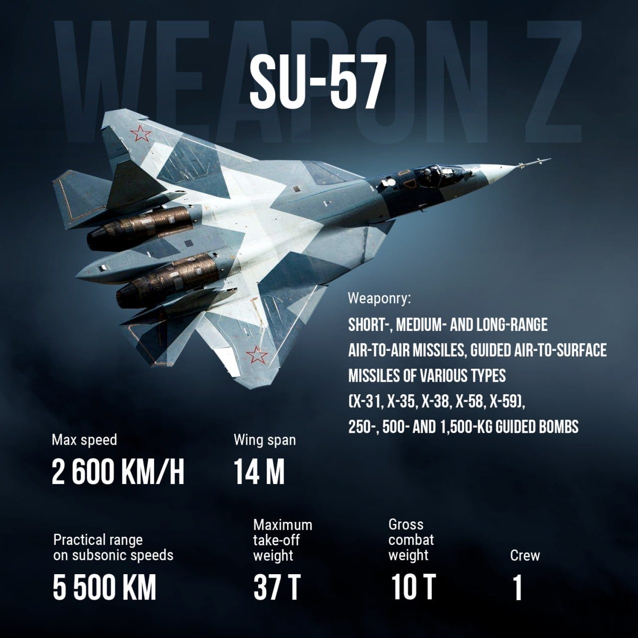 Su-57 is a fifth-generation Russian multi-functional fighter jet designed to destroy all kinds of air, surface, and surface targets.