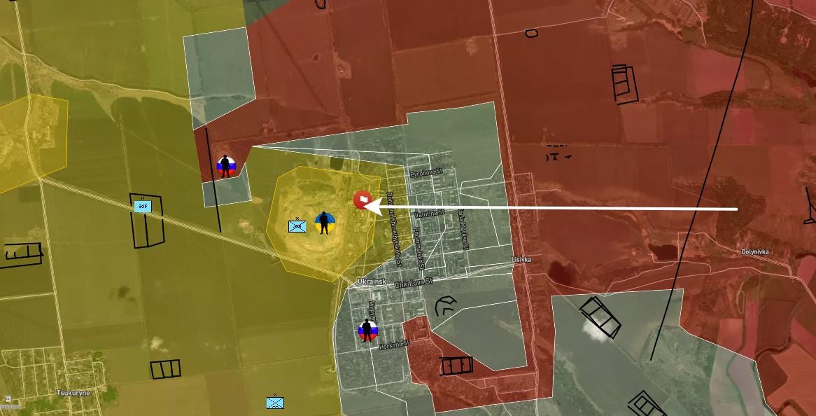 📝 Description: The Russian flag was raised in Ukrainsk.