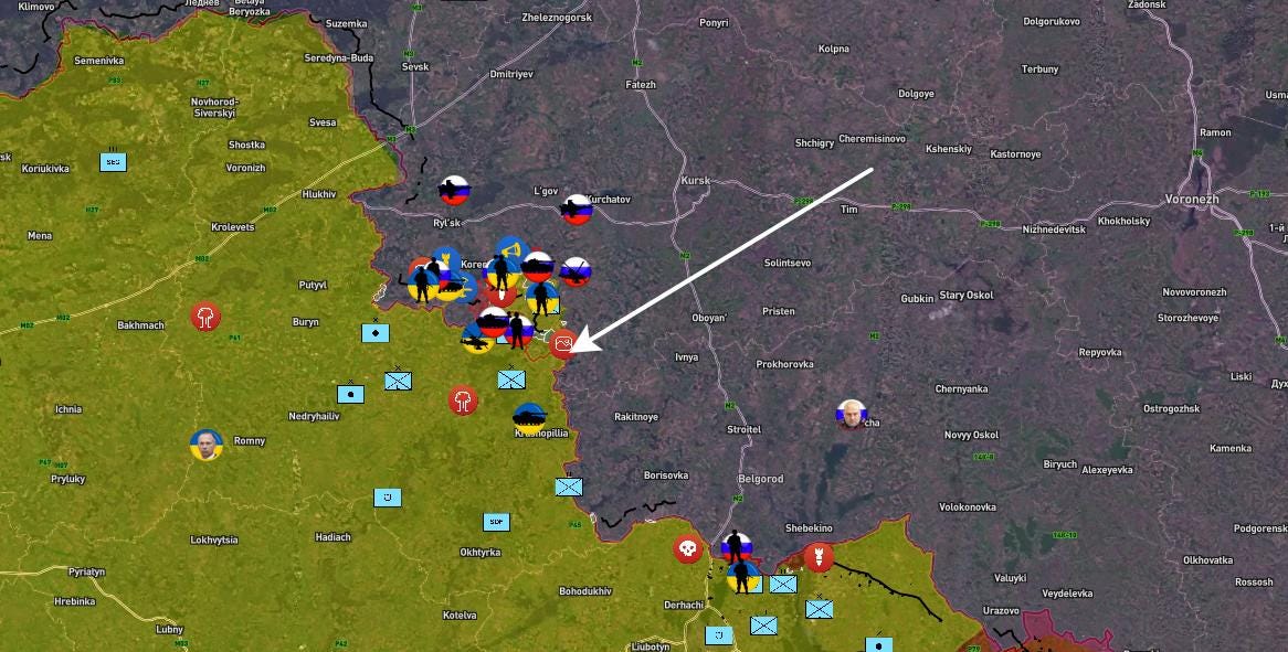 ▫️ Operational-Tactical Aviation and Missile Troops launched strikes against concentration areas and reserves in Sumy region of the 22nd, 41st, and 115th mechanised brigades, 82nd Air Assault Brigade of the Armed Forces of Ukraine, 1st National Guard Brigade, and 101st, 103rd, 106th, and 119th territorial defence brigades near Belovody, Gurinovka, Kruzhok, Katerinovka, Mazevka, Novaya Sloboda, Obody, Revyakino, Rechki, Rudnevo, Rossoshi, Pavlovka, Shalygino, Khoten, Esman, and Yunakovka.