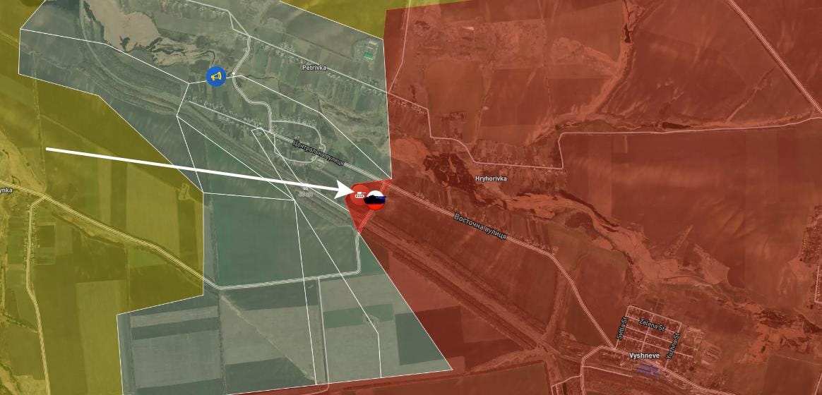 📝 Description: Russian armored attack on Ukrainian positions, landing of troops in Petrivka.