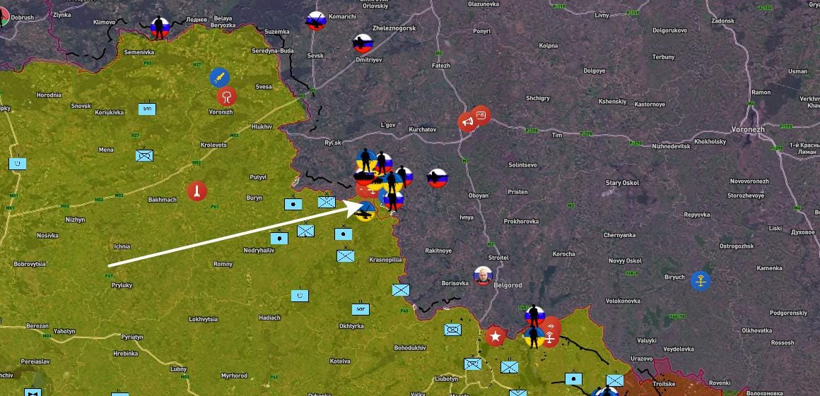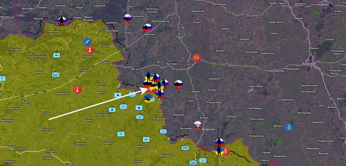 ▫️Operational-Tactical and Army aviation and artillery inflicted losses on the enemy's manpower and hardware near Agronom, Aleksandriya, Guyevo, Zazulevka, Zeleny Shlyakh, Kazachaya Loknya, Kolmakov, Lebedevka, Leonidovo, Martynovka, Makhnovka, Melovoy, Mirny, Nizhny Klin, Nikolayevka, Nikolsky, Novoivanovka, Plyokhovo, Sverdlikovo, Staraya Sorochina, Sudzha, and Cherkasskoye Porechnoye as well as close to Basovka, Belovody, Zhuravka, Miropolye, Pavlovka, and Yunakovka in Sumy region.