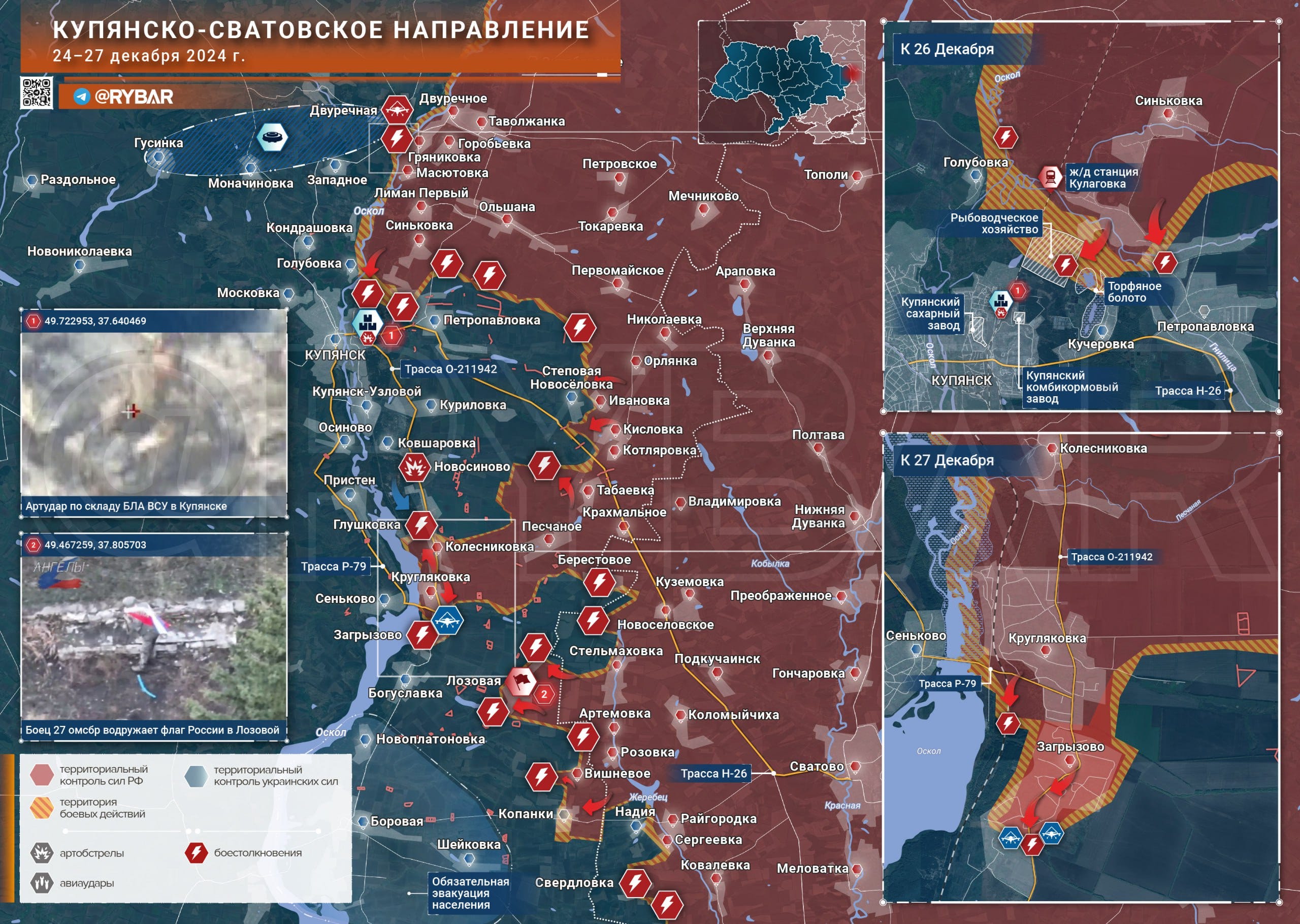 Kupiansk-Svatove direction (ru (https://rybar.ru/piwigo/upload/2024/12/27/20241227192826-e3b42209.jpg); en (https://rybar.ru/piwigo/upload/2024/12/27/20241227191658-2295b0ec.jpg))