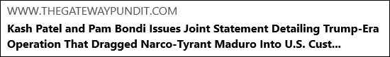 Keywords:[Venezuela][ War ][Maduro][Terrorist][Censorship] - Pub Date: Mon, 05 Jan 2026 19:05:00 +0000